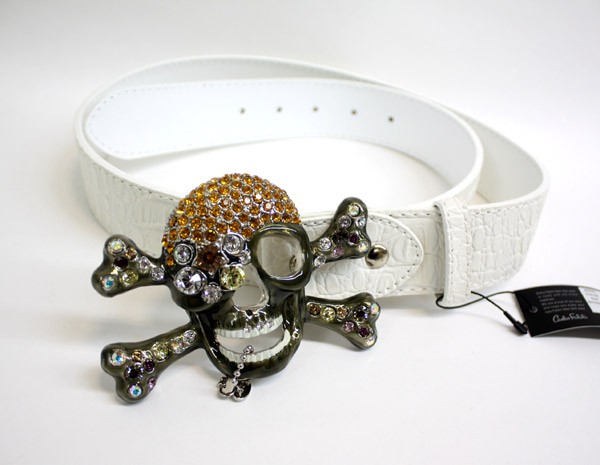 若い年齢層から絶大な人気のある「Carlos Falchi」より斬新なデザインのベルトが新登場!!ロゴに石を散りばめ、スタイリッシュなデザインに仕上がりました。渋谷系のファッションのマッチングもGood!です♪