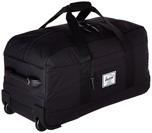 -. Binding : Apparel -. Brand : Herschel Supply Co. -. ClothingSize : One Size -. Color : Black -. Department : unisex-adult -. Feature : Black and white striped fabric liner / Two-way waterproof zipper with pebbled leather pulls / 24x13x8.19 -. Label : Herschel Lage child code -. Manufacturer : Herschel Lage child code -. Model : 10296 -. MPN : 1029600001 -. PackageQuantity : 1 -. PartNumber : 1029600001 -. ProductGroup : Apparel -. ProductTypeName : LAGE -. Publisher : Herschel Lage child code -. Size : One Size -. Studio : Herschel Lage child code -. Title : Herschel Supply Co. Wheelie Outfitter (Update)