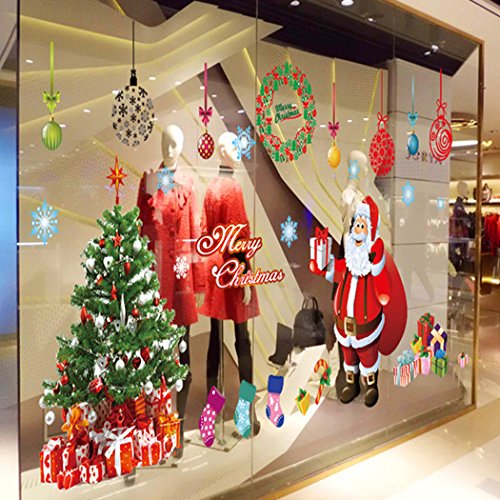 - Title : Oderin Art Big Decal Merry Christmas Tree Santa Claus Decoration Removable Mural Wall Stickers Cupboard for Christmas Shop Room Decor
