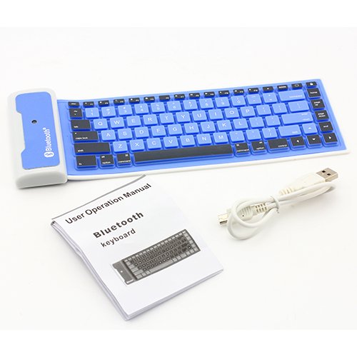 SUPERNIGHT Portable Wireless Bluetooth Foldable Silicone Waterproof Keyboard for Apple iPad 1 2 3 4 iPad Mini.Color :Blue