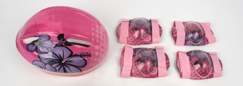 -. Title : Child Helmet and Pads Combo Pack - Pink Aloha Design - CPSC Standard