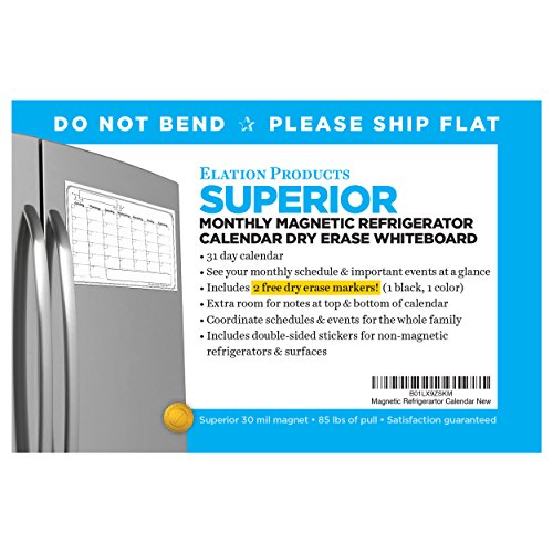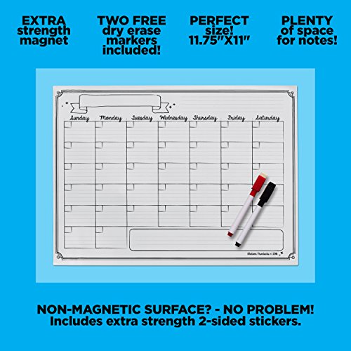 Magnetic 31-day monthly dry-erase calendar flexible easily displayed on refrigerator or other surface - organize your family’s schedule and have more time for the things you enjoy 2 free markers