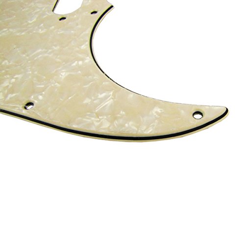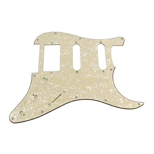 Product Description 100% New Mainly for ST/Squier style guitar or similar Color: Aged Cream Pearl 3Ply with Pearl and ABS Plate and 11 screw holes in the side of the pickguard 3 pickup hole (Fender spaced Humbucker- - Single- Single) Plastic film peel-off protetove coating, while using please split off Package Including: 1 x Pickguard 0