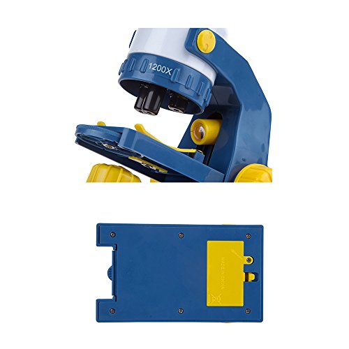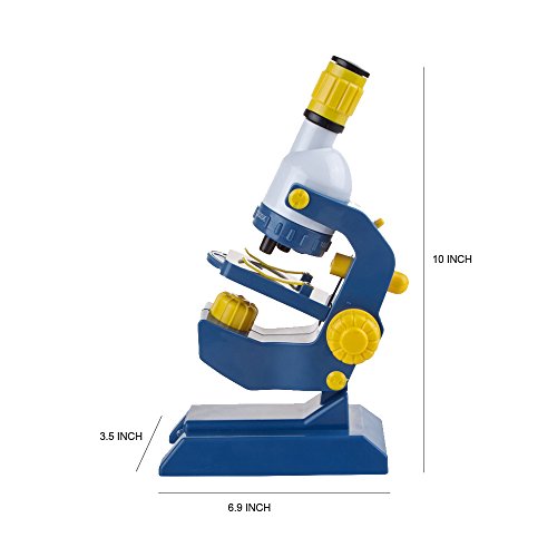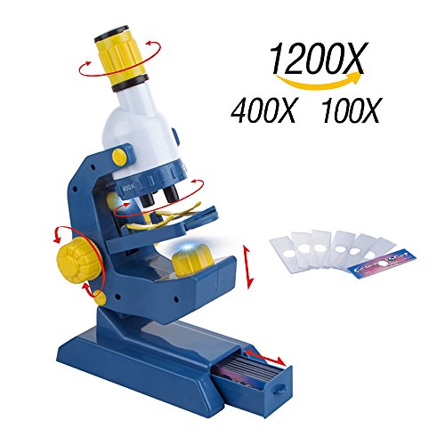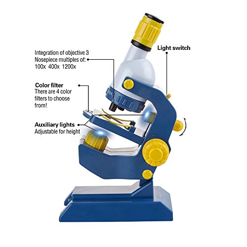 Scientoy Microscope for kids, 100X,400X and 1200X Magnification with Prepared Slides,Science Toys for Children, Blue/Yellow