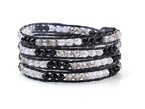-. Binding : Jewelry -. Brand : Blupear -. Color : Black -. Department : Womens -. Feature : The closure has a mother of pearl shell button. 2 Adjustable Loops. / The Size of the Crystals is 4 mm, and they are manmade in black, grey clear, and white clear color. / Length(inch): 27.6 normally you can do at least four layers & Weight(g): 18 / Hand-Knotted with a soft black leather. -. Label : Blupear -. Manufacturer : Blupear -. Model : BR-CO111560 -. MPN : BR-CO111560 -. PartNumber : BR-CO111560 -. ProductGroup : Jewelry -. ProductTypeName : FASHIONNECKLACEBRACELETANKLET -. Publisher : Blupear -. Studio : Blupear -. Title : Black and Clear Crystal Wrap Bracelet Handmade Woven Multilayer 4mm Faceted Beads Bangle Fashion Style