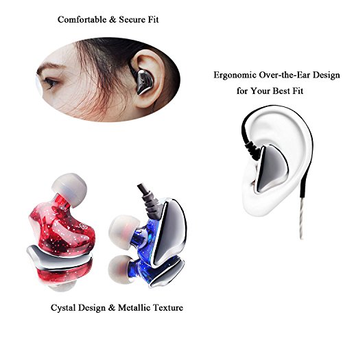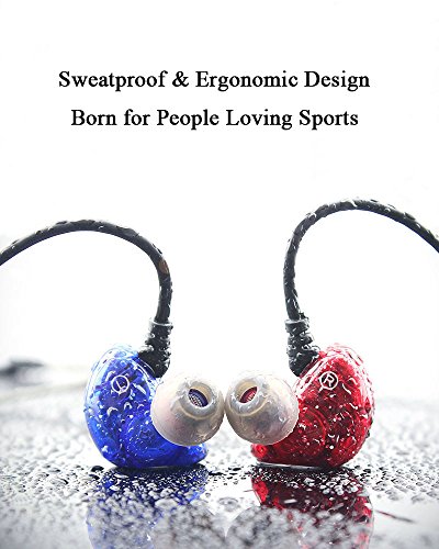 ♬ Ergonomic and Stylish Design: The sports headphones comes with patented over the ear design, and blue&red earbuds has adopted electroplating technique, which maks it pretty stylish and shinning.