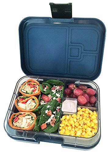 COMPACT, LIGHTWEIGHT, AND EASY TO CLEAN. Four compartment LEAK-PROOF bento style lunch box for kids and adults. One 2 1/2 cup portions for main dishes, two 3/4 cup portions for sides, plus one 1/4 cup well for dips/sauces/yogurts.