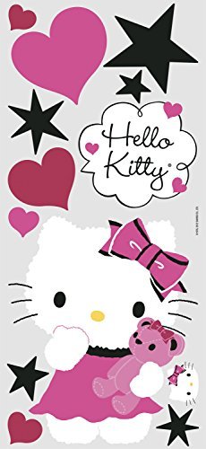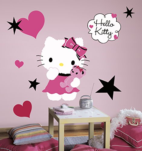 Get stylish with Hello Kitty! These sweet wall graphics are sure to delight and inspire Hello Kitty fans of any age, young or old. These easy to apply wall decals include a giant (18"x20") Hello Kitty, stars, hearts, and more (13 individual cutouts ranging in size from 1.5" to 20"), and they can be stuck to any smooth surface including walls, doors, windows, and more. They apply in only minutes and are fully removable and repositionable. You'll love how easy it is to transform your room with Hello Kitty! ©1976, 2011 SANRIO CO., LTD. Used Under License.Feature