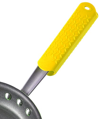 Pot Handle Cover-Silicone Cast Pot Pan Handle Cover, Mitts Grip Sleeve-Designed To Hold Your Pots/Pans Without Danger Of Burning, Flexible Enough To Store Away In A Drawer. By Kitch N’ Wares (Yellow)