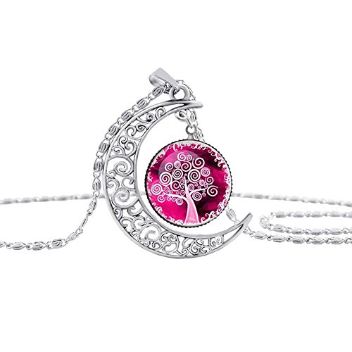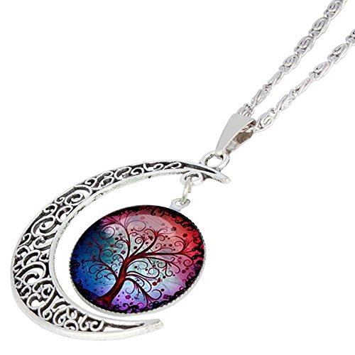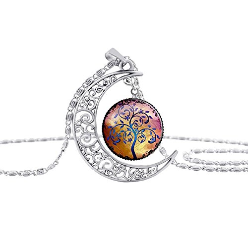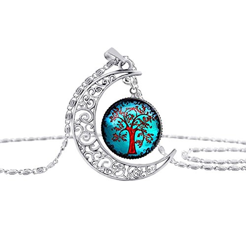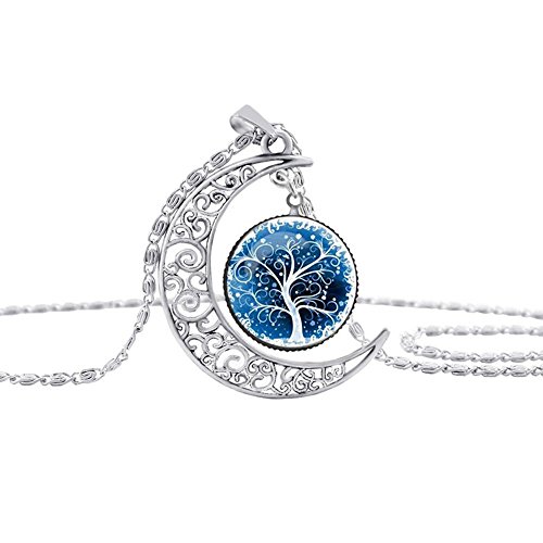 -. Title : Linsh Pendant Necklace Hollow Out Carved Moon Tree of Life Pendant Charm Chain Necklace Time Gems