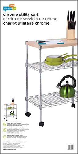 - Title : Honey-Can-Do CRT-04346 Rolling Utility Cart with Wooden Top, Chrome Finish