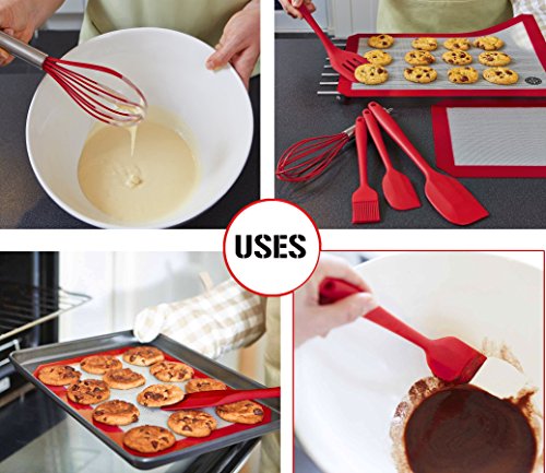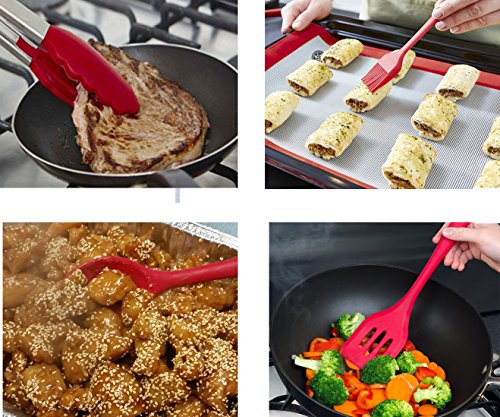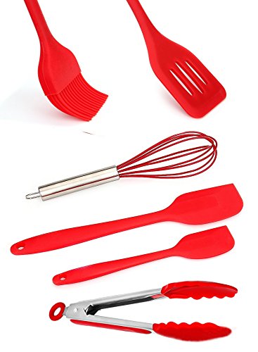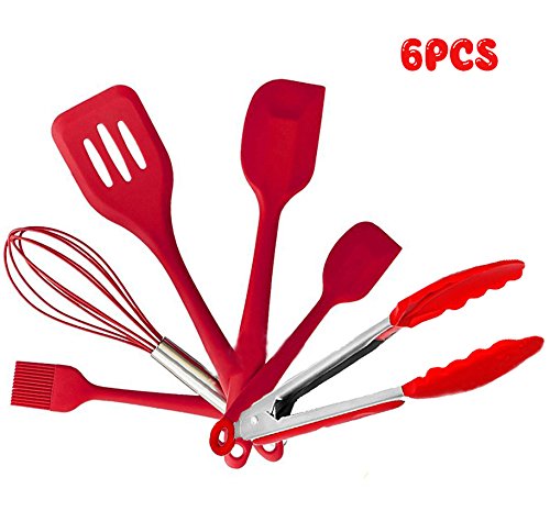 6pcs Kitchen Utensil Set Non-Stick Pan Kitchenware Set FDA Food Grade Silicone Heat-Resistant Cooking Tools For Baking Sauteing (3 Spatulas, Basting Brush, Eggbeater, 9'' Food Clip)