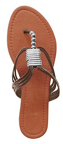 Binding : Apparel Product Description New by Peach Couture (a registered trademark). A summer must-have! Summer just got a little bit hotter and a whole lot easier. Women's T-Strap Beaded Strappy Sandal. Hey, we're into it - the way you rock their metallic vegan faux-leather straps and silver accents makes us wonder if these festive stunners were made for you. Peach Couture sandals exemplify chic comfort, the insole of this sandal features memory foam for added comfort. With unique materials and fine styling, each pair of Peach Couture sandals is an affordable luxury that intelligently combines a youthful attitude with a down to earth sensibility. The rubber bottom gives excellent traction in any weather. A classic shoe that will stand the test of time, at an exceptional price. Mix and match any outfit or accessory with these shoes; available in 4 beautiful colors! 0