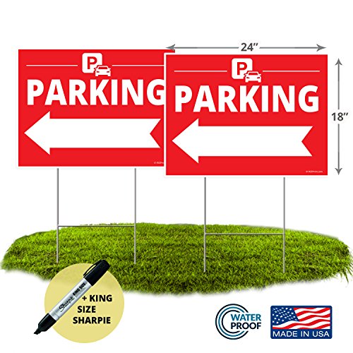 Parking Sign 24"x18" (2 Pack) with Directional Arrow (Left or Right) and 2x H Stakes, with Bonus King Size Sharpie Marker