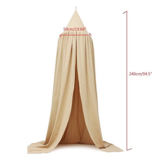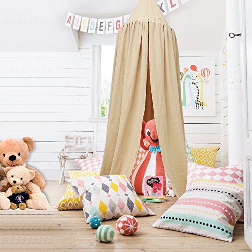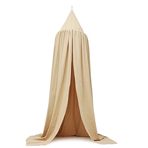 Kids Princess Bed Canopy, Sanmersen Mosquito Net Canopy Cotton Cloth Tents Childrens Room Hanging Decorate for Baby Kids Reading Play Indoor Games House with LED Star Light(Khaki)