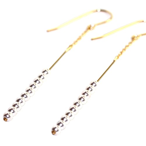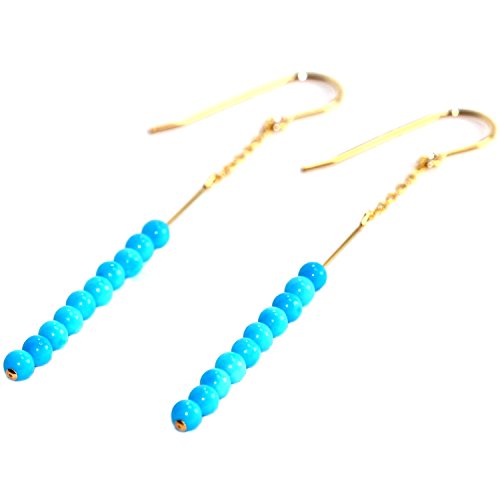 -. Title : Handmade 14-kt Gold-Filled  Brass Long Earrings with 3mm Beads