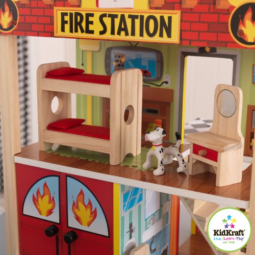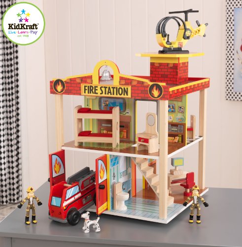 -. Binding : Toy -. Brand : KidKraft -. Color : Multi -. Department : Furniture -. EAN : 0787461571644 -. Feature : There's nothing more fun than saving the day / 10 pieces of furniture / 2 bendable firefighters / Two fun vehicles - a helicopter and a fire truck / Garage doors open and close -. IsAdultProduct : 0 -. IsAutographed : 0 -. Label : KidKraft -. Manufacturer : KidKraft -. Model : 63236 -. MPN : 63236 -. NumberOfItems : 1 -. PackageQuantity : 1 -. PartNumber : 63236 -. ProductGroup : Toy -. ProductTypeName : TOYS_AND_GAMES -. Publisher : KidKraft -. Size : 16Lx16Wx17.76H -. Studio : KidKraft -. Title : Kidkraft Fire Station Set -. UPC : 706943632369 -. Warranty : 90 day free replacement parts