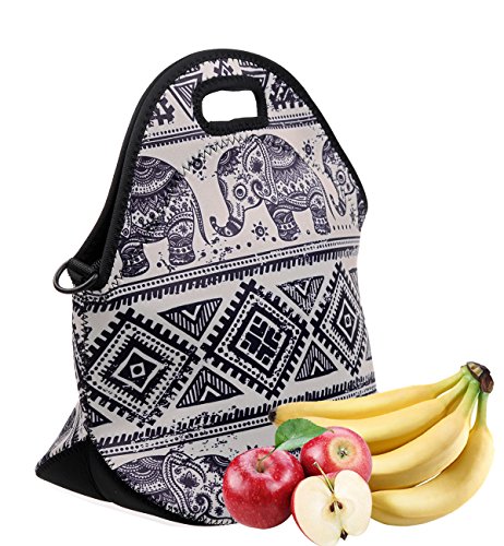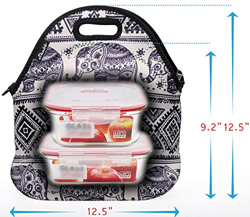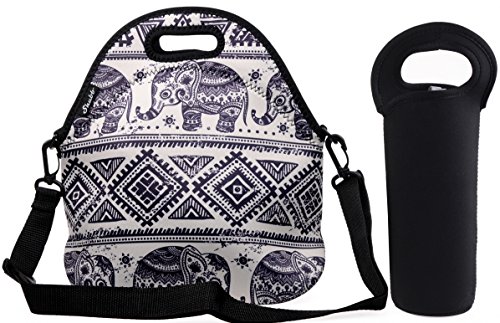 Shubb Large Lunch Bag Set, Neoprene Insulated Lunch Bags Tote With Removable Shoulder Strap and Bottle Sleeve