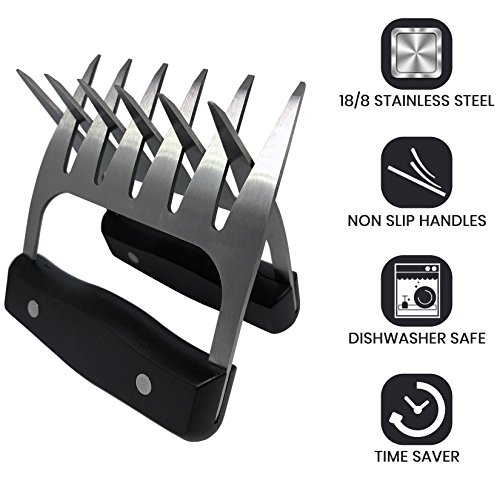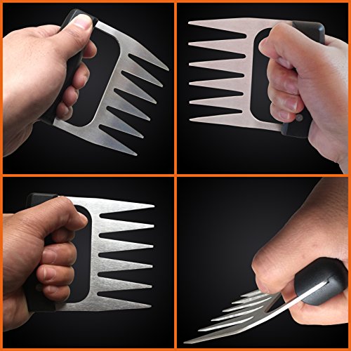 - PREMIUM STAINLESS STEEL BEAR CLAW: Unlike plastic and nylon bear claws the compromise the taste of the food and start breaking after a few uses, our meat-shredding claws are made using food grade premium stainless steel that is both durable and lightweight so that you never have to worry about it bending as well as being highly heat resistant.