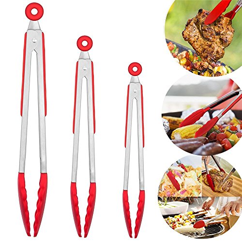 - 3 SIZES SERVE DIFFERENT PURPOSES: X-Chef Silicone Tongs come with 3 sets measuring 7, 9 and 12 inches for different tasks at hands. Perfect to serve as meat, salad, BBQ, grilling, pastry, serving and even ice tongs!