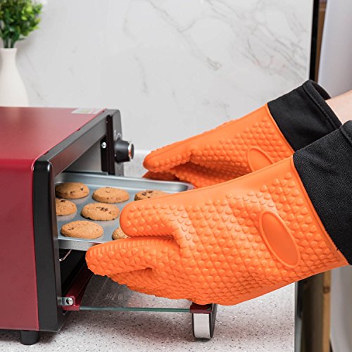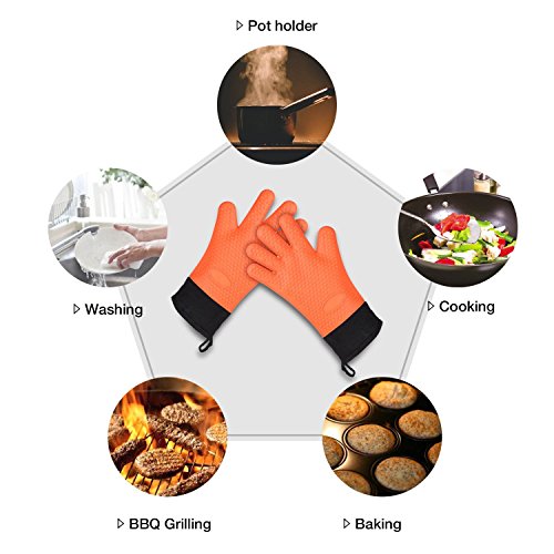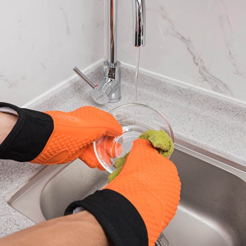 GREAT HEAT RESISTANT PROTECTION UP TO 480°F: Our Oven Gloves Are 100% Food Grade Silicone Material Which Can Resist 480 °f >Other Brands 450 °f. Moreover, The 13.4 Inches Length Oven Gloves And Its Soft Quilted Liner Providing Extra Protection For Your Forearms. Never Worry about Hot Pans or Steamy Ovens.
