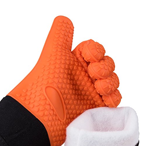 ONE SIZE FITS MOST & 100% QUALITY GUARANTEE: Lets Many Different Sized People In The Same Group Or Family Use The Same Pair Of Mitts. The Flexible Five Finger Mitts Lets Even Those With Smaller Hands Firmly Grip Hot Items And Move Them. If Our Oven Mitts Gloves Product Is Deemed Defective, You Can Simply Return To Us For An No Hassle Replacement Or Refund.