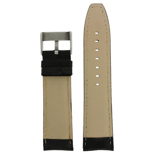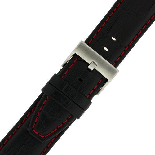 -. Title : Watch Band Genuine Calfskin Alligator Grain Black with Red Stitching Thick Padded 20mm