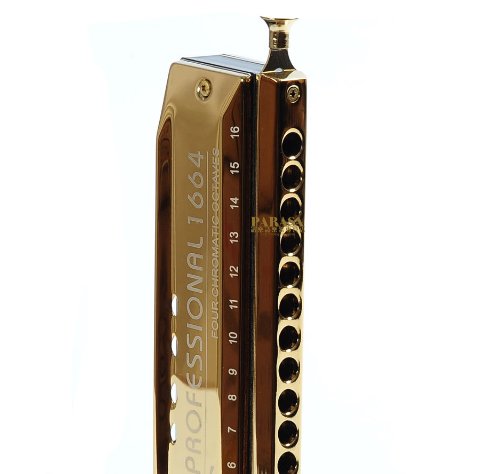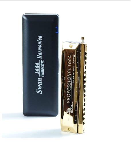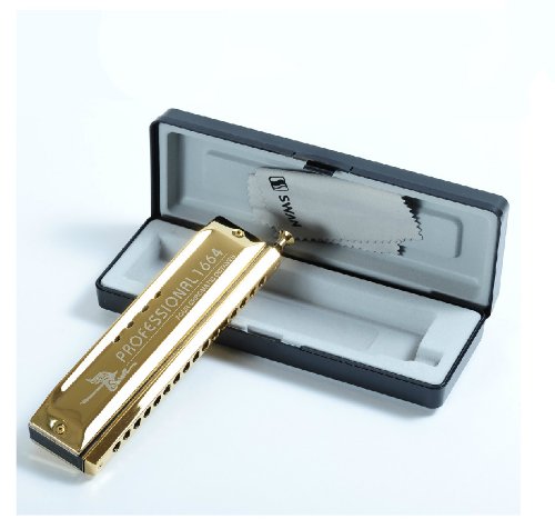 Swan 16 Hole 64 Chromatic Harmonica, Laser Imitation Gold Square