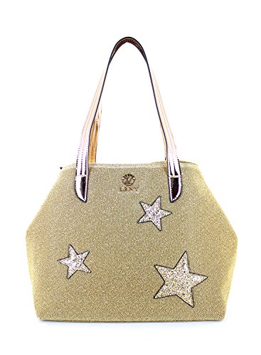 LANY "Shining Star" Textured Metallic Fabric Glitter Star Shoulder Handbag w/ Crossbody Strap