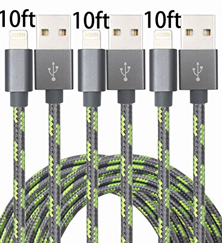 Studio : E-COMMERCE BASICS Publisher : E-COMMERCE BASICS Binding : Wireless Phone Accessory Product Description Complete Charge and Sync with iPhone 7 / 7 Plus 6s / 6s Plus /iPhone 6 / 6 Plus / 5s / 5c / 5, iPad Air / Air 2, iPad mini / mini 2 / mini 3, iPad (4th generation), iPod nano (7th generation), and iPod Touch (5th generation). Performance Ultra Fast Charging, Extra Strong, Ultra-Resistant.Up To 20%. Faster Charging Than Conventional Cable Quality Using High-Quality Tangle-free Nylon Braided jacket and Core Material, Precise interface Design. The Unique Design Of High Voltage can keep Good Signal and High-Speed Stability Specification 10 Feet,3Pack GreyGreen Lightning to USB Sync And Charge Cable Guarantee 12 Months Worry-free Product Guarantee for Every Purchase from E-COMMERCE,Professional technical support and always satisfied customer service 7 days one week available
