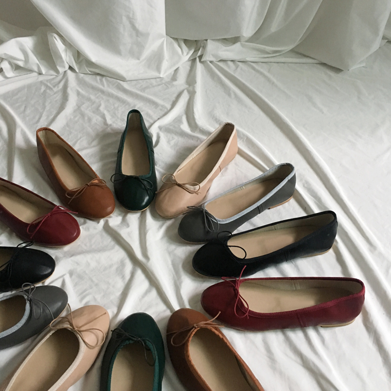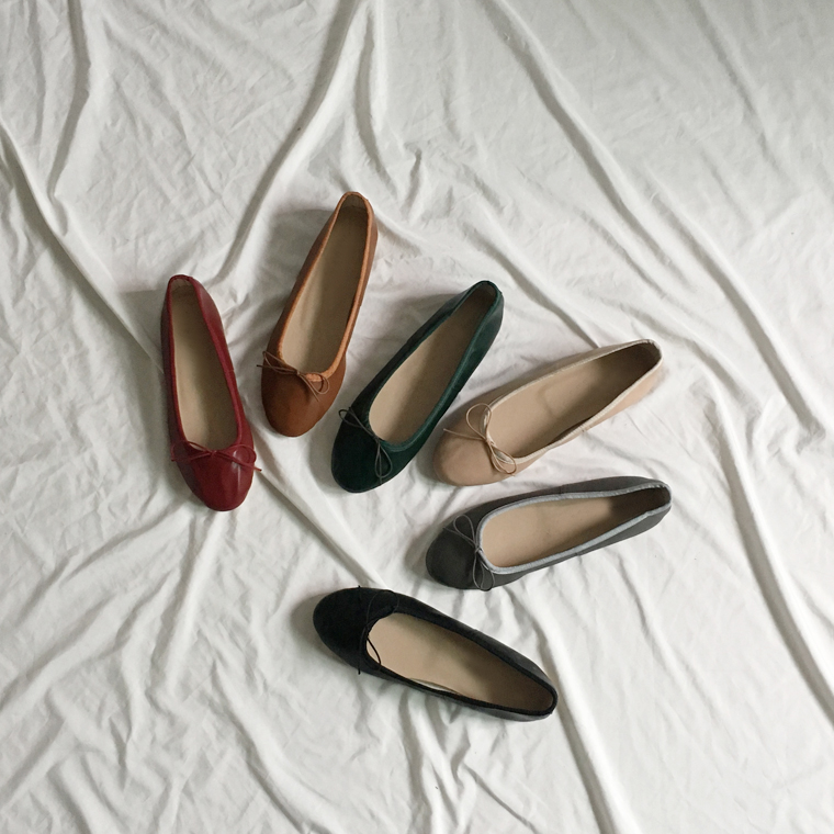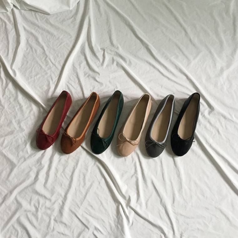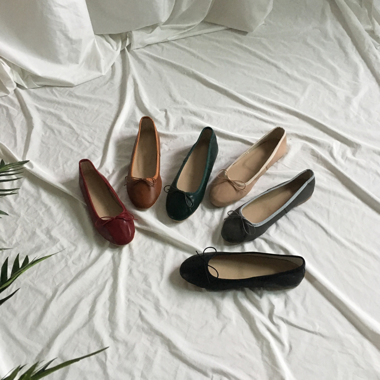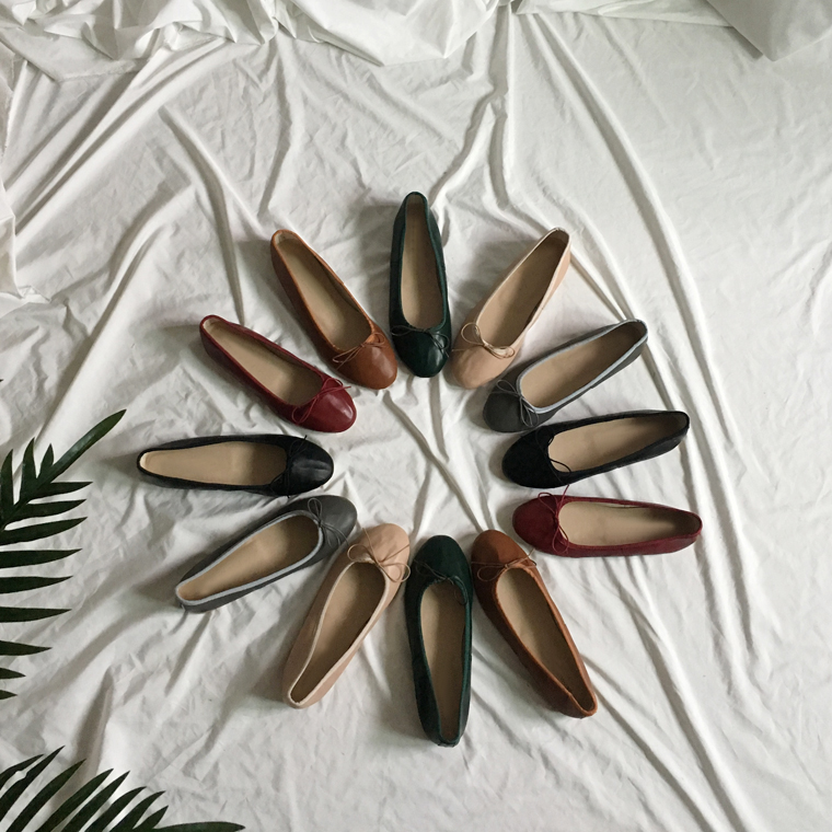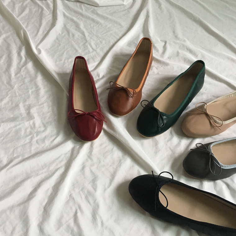 Ribbon Flat Shoes 6col Women's Leather Round Nose Falling Shoes Women