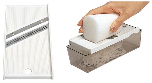 おろし・スライス・千切り・ツマ切りの4種類のプレートでいろいろな料理に便利に使える