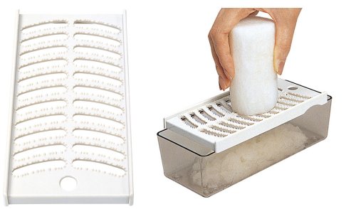 素材・材質:受け皿/AS(アクリロニトリル・スチレン)樹脂、その他樹脂部/ABS(アクリロニトリル・ブタジエン・スチレン)樹脂、スライス刃/ステンレス刃物鋼、クシ刃/18-8ステンレススチール