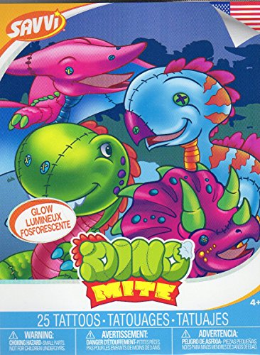 Dino Mite - Glow Temporary Tattoos - 25 Tattoos By Savvi