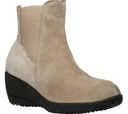 Keep a spring in your step in the Propet Gwen boot, a great choice for everyday, cool-weather adventures. Equipped to stand up to a bit of weather, this women's ankle boot has a Scotchgard�-treated suede upper with an inside zipper for easy entry and elastic goring on the lateral side for comfortable give. Inside, a brushed nylon lining wicks moisture atop the EVA-cushioned footbed. The Propet Gwen ankle bootie sits atop a rubber wedge sole unit designed for both traction and a touch of lift.Feature