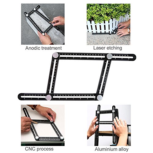 Multi Angle Measuring Ruler,Angle Template Tool,Multi-Angle Premium Aluminum Alloy Angle-izer Tools for Handymen, Builders, Craftsmen and DIY-ers (Black-Aluminum Alloy)