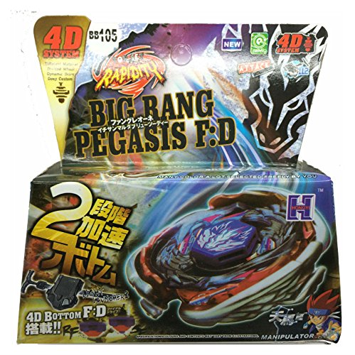 -. Binding : Toy -. Brand : Unbranded -. EAN : 0718913373691 -. Feature : Each Beyblade package will include: Face bolt Fusion Wheel Energy Ring Spin Track Tool Launcher with rip cord Sticker Each beyblade will come in its retail package as shown / Included: -1 Beyblade + Launcher and rip cord in package shown -. IsAdultProduct : 0 -. Label : na -. Manufacturer : na -. ProductGroup : Toy -. ProductTypeName : TOYS_AND_GAMES -. Publisher : na -. Studio : na -. Title : BIG BANG PEGASUS BEYBLADE 4D TOP METAL FUSION FIGHT MASTER (NEW + LAUNCHER) -. UPC : 718913373691