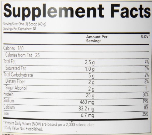 -. Feature : Contains 25 grams of protein / Gluten free, non-GMO, soy and dairy free / Cholesterol-free and diabetic friendly