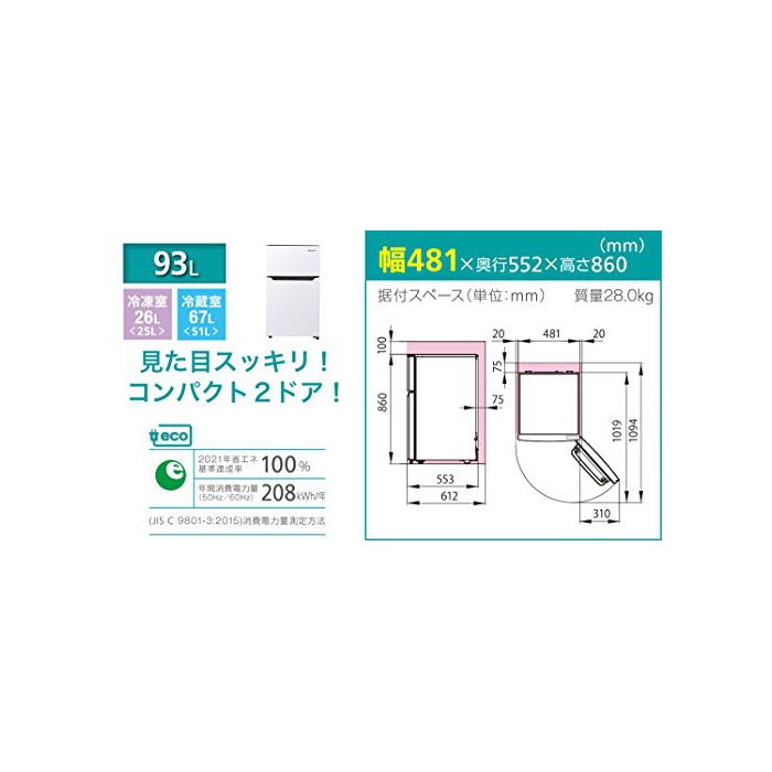 원본상품명: ハイセンス 冷凍冷庫 93L HR-B95A