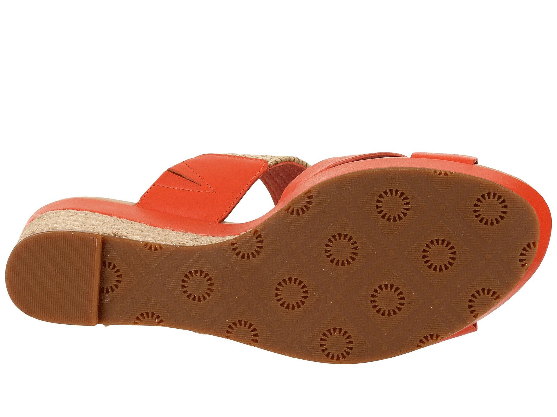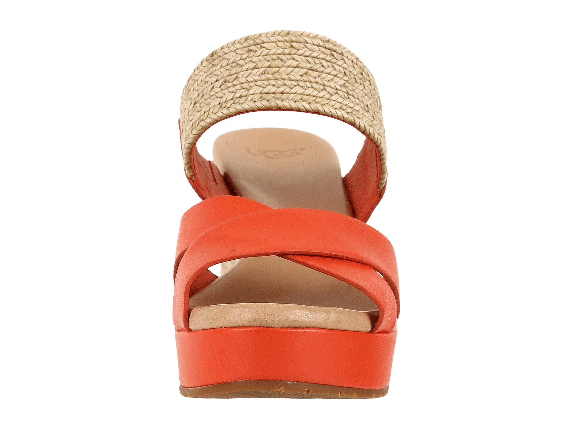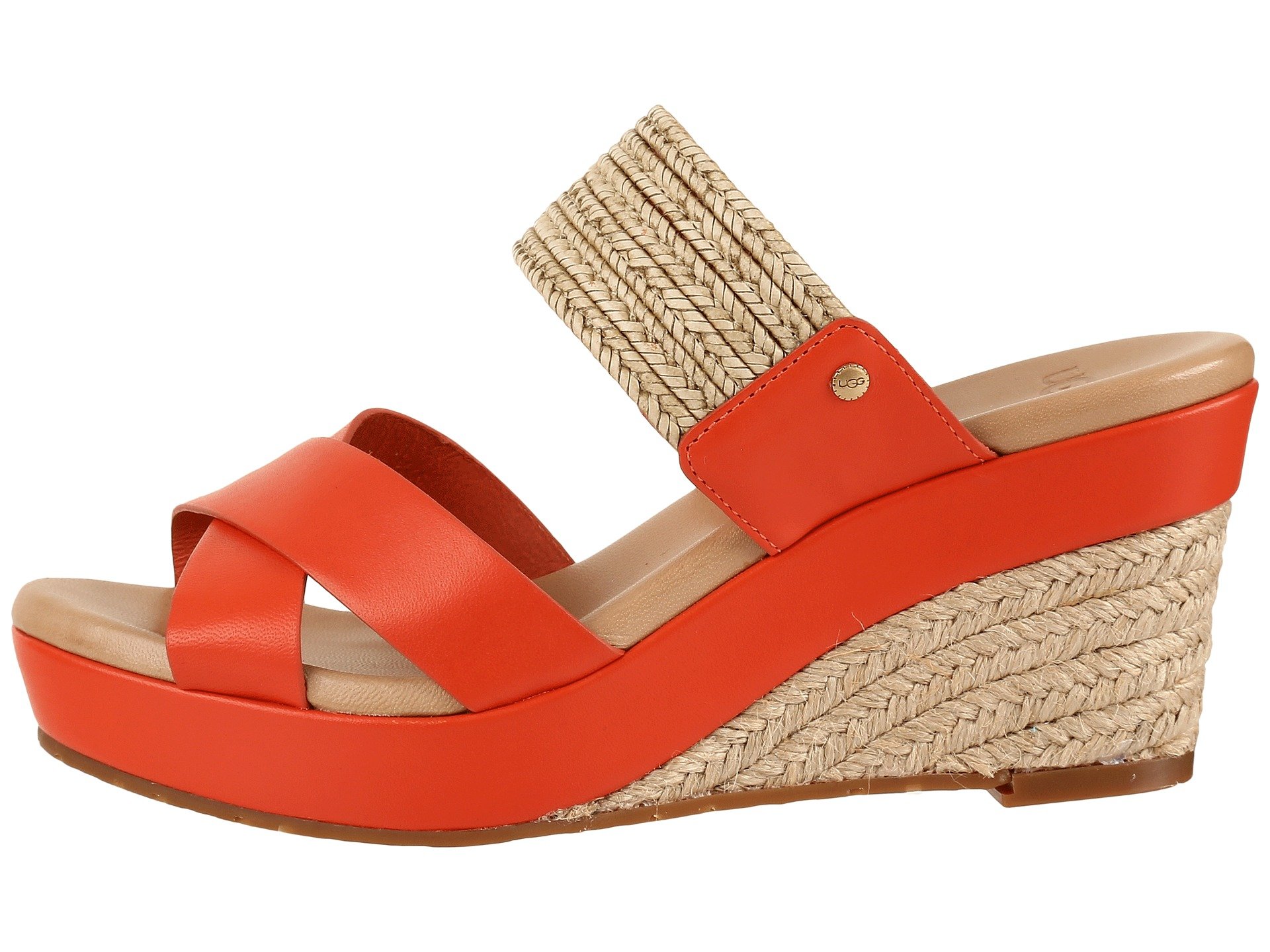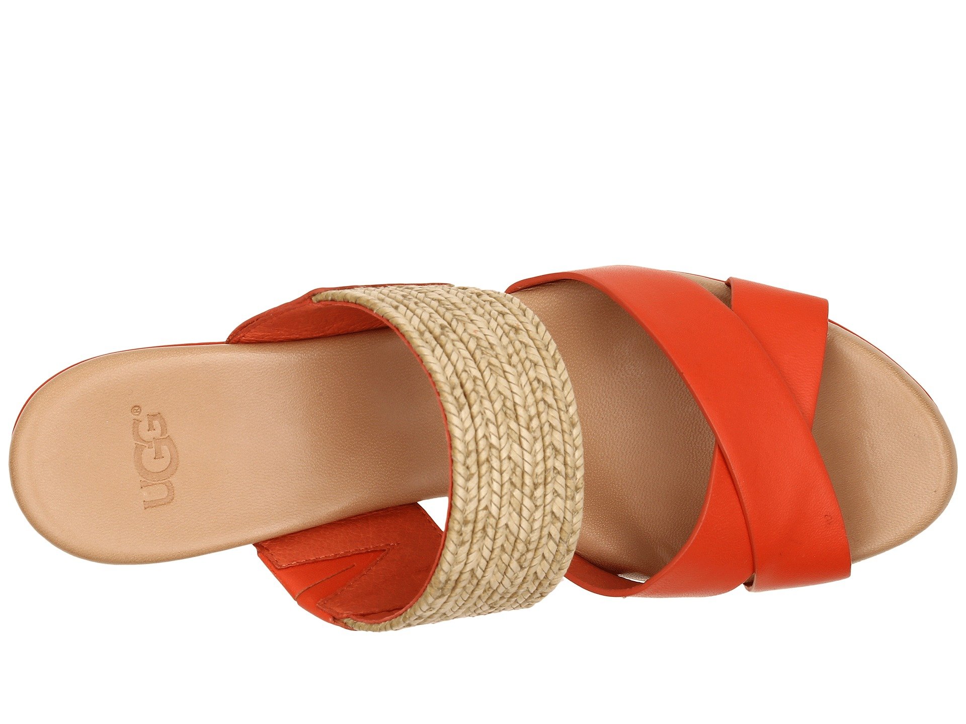| Product Information SKU: #8811494This item is subject to quantity limitations.Cherish your good looks in the alluring Adriana wedge by UGG?.Leather upper with crisscross and woven straps.Easy slip-on style.Leather lining.PORON? and foam insole with arch support.Jute-wrapped midsole.Rubber outsole.Made in Brazil.Product measurements were taken using size 7, width B - Medium. Please note that measurements may vary by size.Weight of footwear is based on a single item, not a pair.Measurements: Heel Height: 3 in Weight: 9 oz Platform Height: 1 1?4 in |