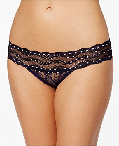 b.tempt'd by Wacoal Women's Lace Kiss Bikini Pant, Peacoat/Polka Dot Accent, Large