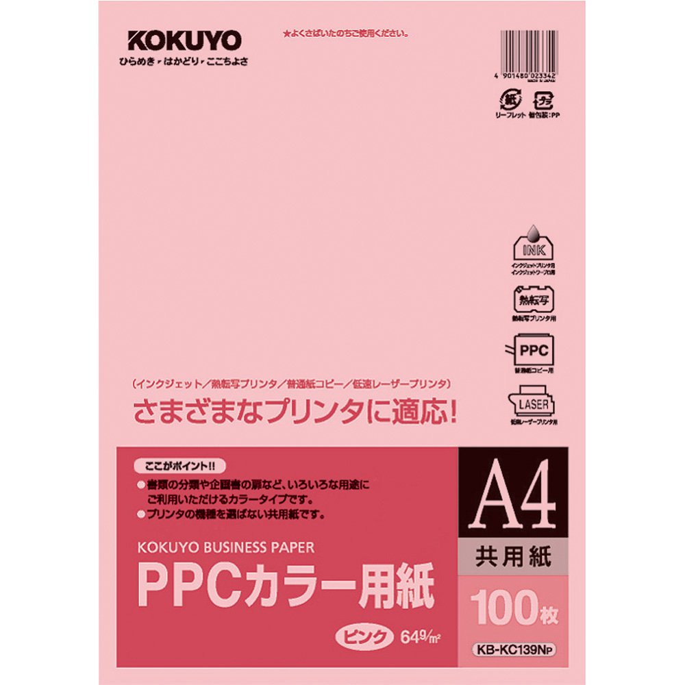 Kokuyo PPC color paper both paper recycled paper pink sheets A4 100 KB-KC139NP (japan import)