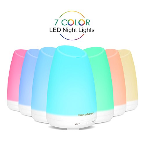 InnoGear 150ml Aromatherapy Essential Oil Diffuser Ultrasonic Portable Cool Mist Aroma Room Freshener with 7 Color LED Night Lights and Waterless Auto...