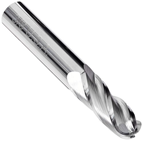 Kodiak Cutting Tools KCT133032 USA Made Solid Carbide Ball Nose End Mill, 4 Flute, 3/8" Shank, 1" Length of Cut, 2-1/2" Overall Length, 3/8" Diameter