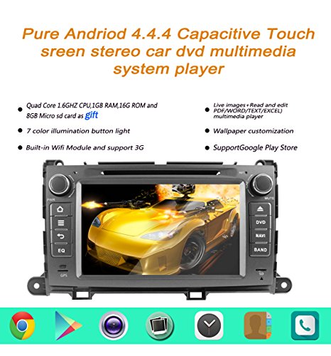 - Title : YINUO Quad Core Android 4.4 8" 1024*600 HD Capacitive Touch Screen Car DVD GPS Stereo for Toyota Sienna In-Dash Navigation AV receiver w/ Airplay Steering Wheel Control/Bluetooth