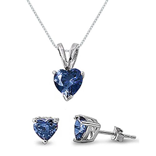 -. Title : Sterling Silver Simulated Blue Topaz Heart Necklace and Earrings Set