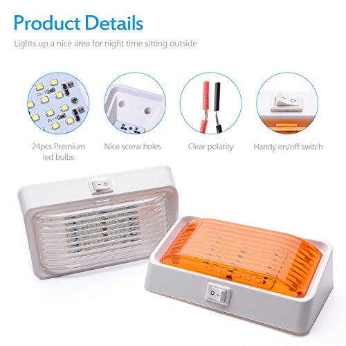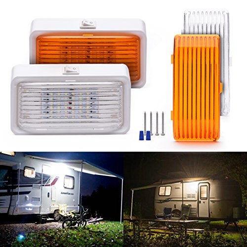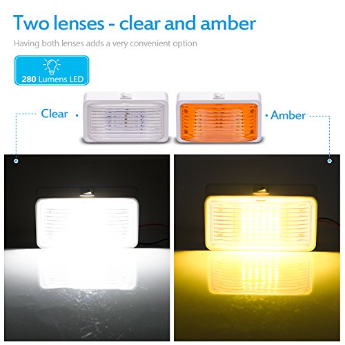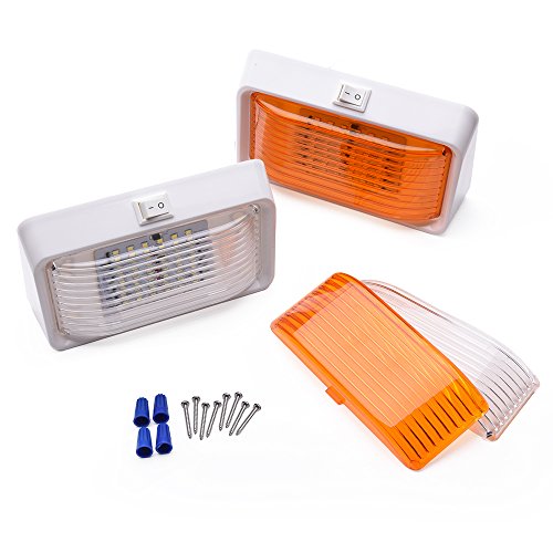 MICTUNING 12V LED RV Porch Light 280 Lumens with On/Off Switch and Removable Lens for RVs Trailers Campers (White/Amber, Pack of 2)