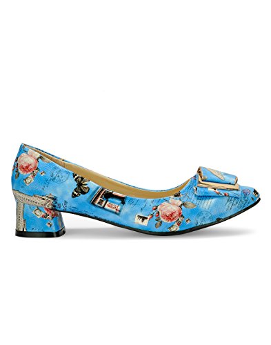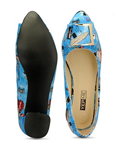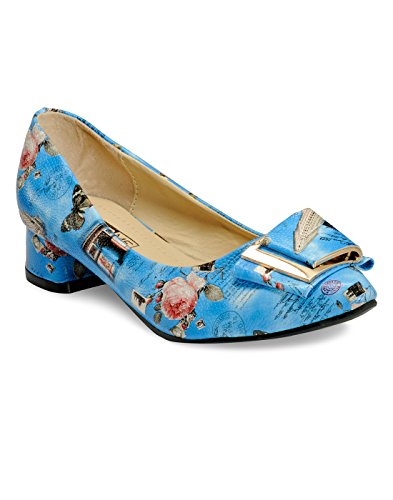 Product DescriptionColor: Blue Closing: Slip-on Material: Rexine Heel Shape: Mid-heel Care: Wipe Surface with a damp, clean cloth to remove dust.0