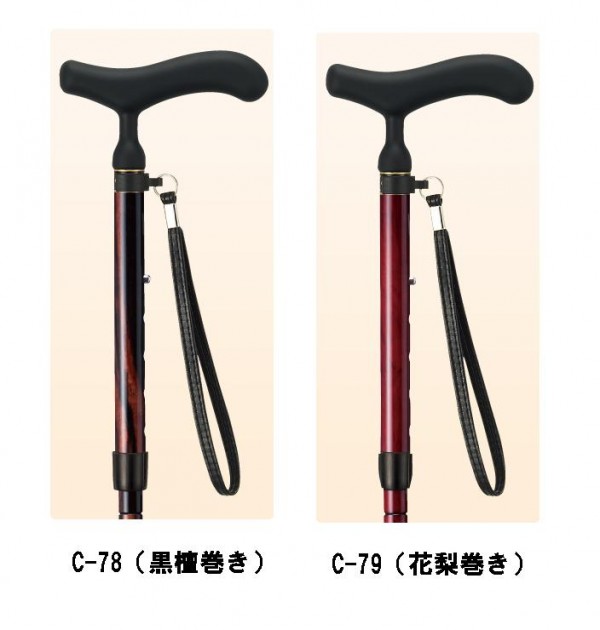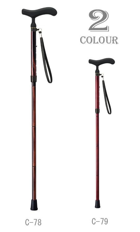 | サイズ | 長さ:77~87cm(折りたたみ時:32cm)、径:17mm、杖先ゴム:外径29mm 個装サイズ:39×31×11cm |
