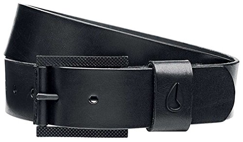 A full-grain leather Nixon belt with a textured, gunmetal-tone buckle. Tonal logo stud at the end. Adjustable.